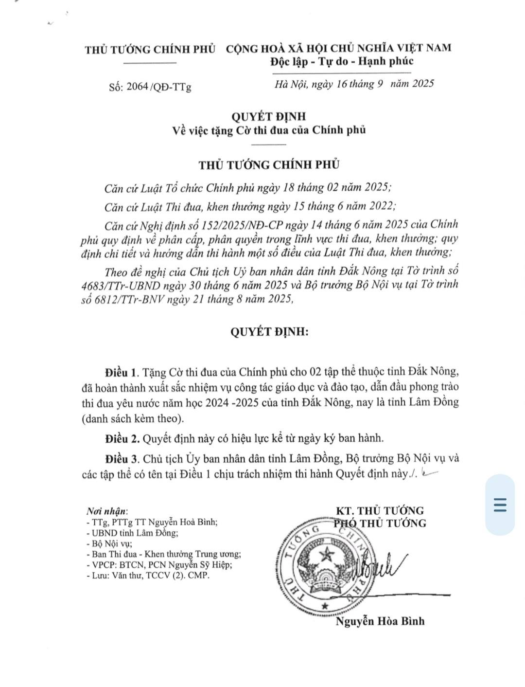 🏅 Vinh Dự Lớn Lao: THCS Lương Thế Vinh xã Quảng Tín tỉnh Lâm Đồng được Trao cờ Thi đua của Chính Phủ!