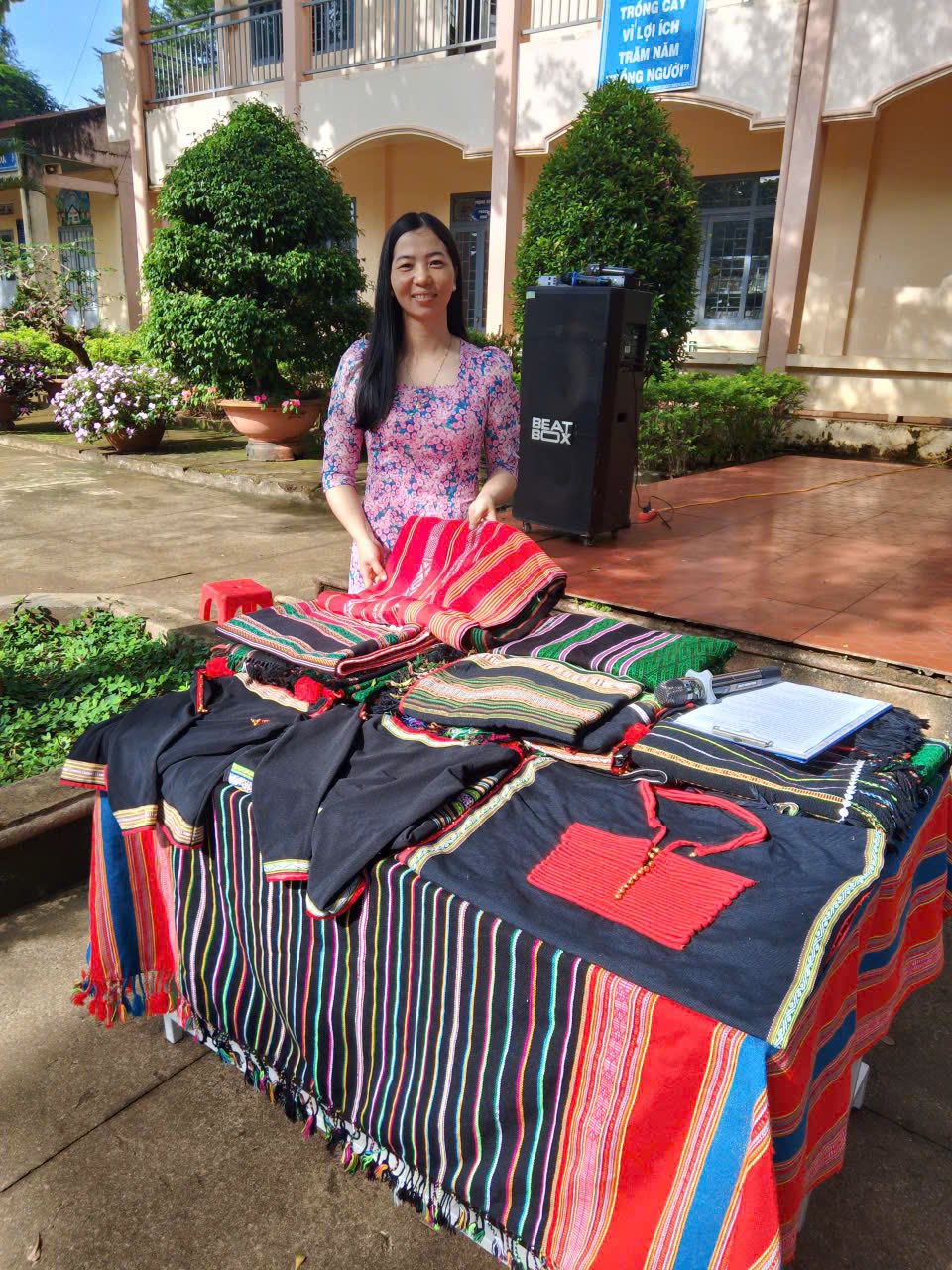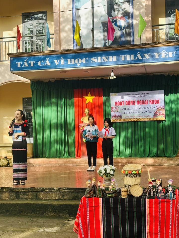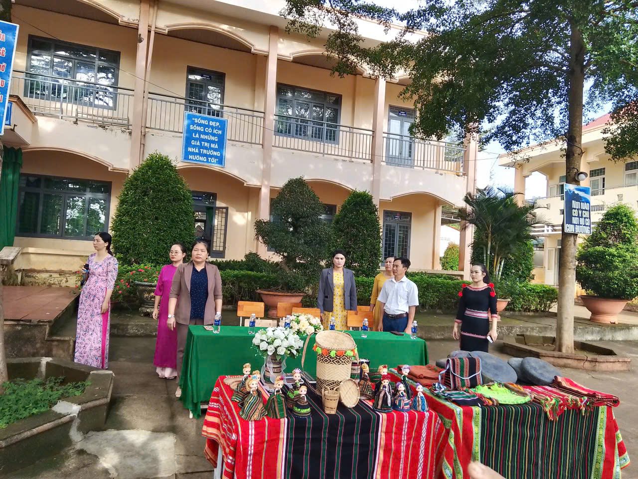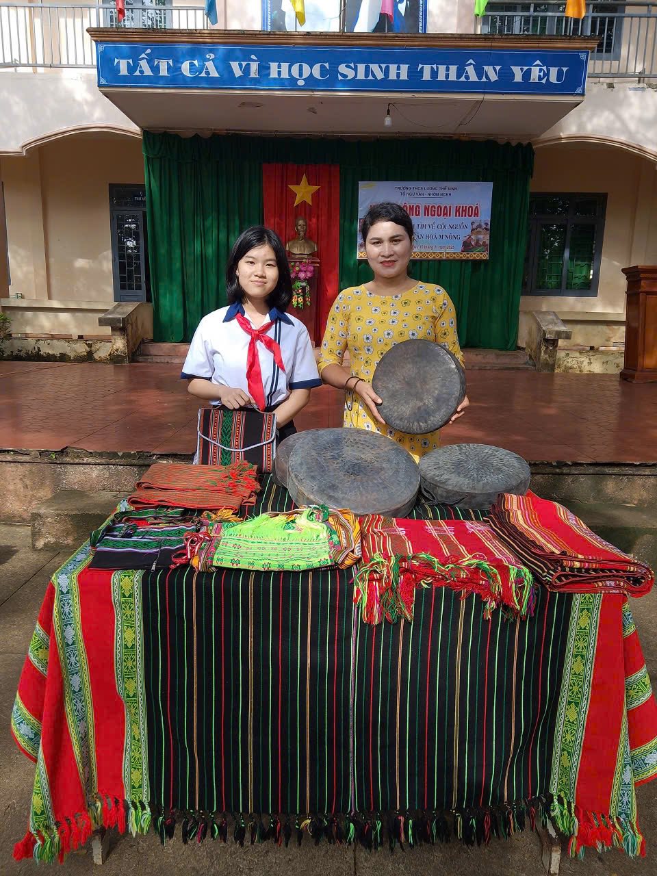 Không khí buổi ngoại khóa vô cùng sôi nổi và rộn ràng. Ngay từ sáng sớm, sân trường đã được trưng bày những sản phẩm đan lát tinh xảo, những tấm vải thổ cẩm rực rỡ và chiêng của đồng bào M’Nông. Các thầy cô và học sinh đều háo hức chờ đợi giờ phút chương trình bắt đầu.