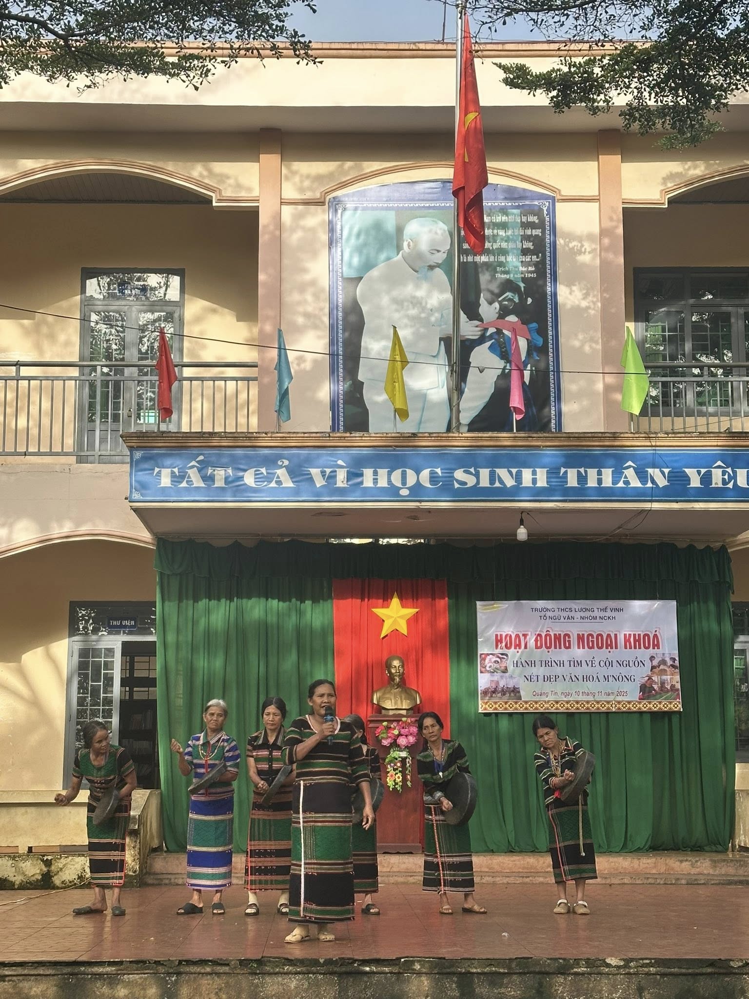 Buổi ngoại khóa khép lại trong niềm vui và sự lưu luyến. Ai cũng ấn tượng trước vẻ đẹp giản dị mà sâu sắc của văn hóa M’Nông. Hoạt động này không chỉ giúp học sinh mở rộng hiểu biết, mà còn khơi dậy trong các em lòng tự hào và ý thức giữ gìn, phát huy những giá trị văn hóa truyền thống của các dân tộc Việt Nam. Một số hình ảnh đẹp tại buổi sinh hoạt: