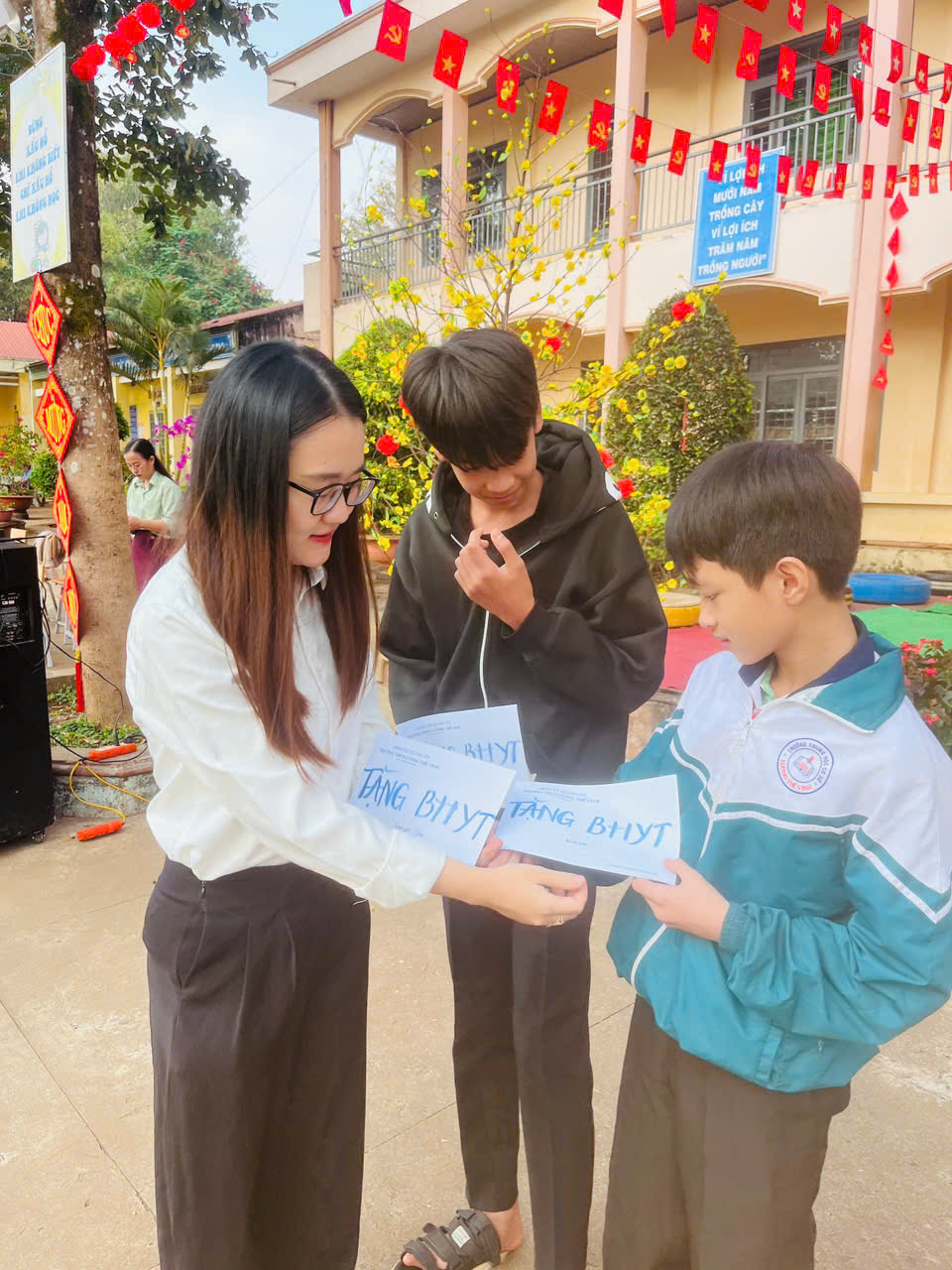 Bên cạnh các phần quà Tết ý nghĩa, nhà trường còn trao tặng 03 suất Bảo hiểm y tế cho học sinh nghèo, góp phần chăm lo sức khỏe, tiếp thêm động lực để các em yên tâm học tập, vươn lên trong cuộc sống.
